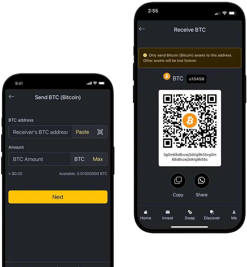 Instantly send & receive crypto anytime